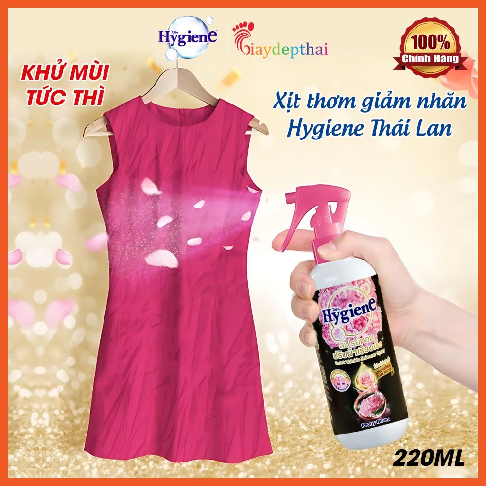 Xịt quần áo chống nhăn Hygiene (Thái Lan) là giải pháp tiện lợi giúp làm phẳng, làm mềm vải và khử mùi hôi, giữ hương thơm lâu mà không cần ủi/là.
